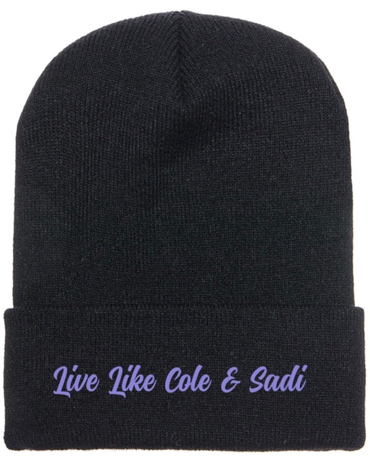 Embroidered hat with light purple stitching. (Sadi's favorite color.)